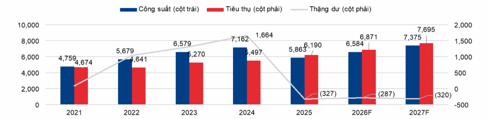 Theo DHC, công suất hiện tại của ngành là 6,2 triệu tấn. Với mức tăng trưởng 10% so với năm trước, đạt 6,8 triệu tấn, thị trường có khả năng hấp thụ nguồn cung gia tăng từ việc bổ sung công suất mới của Cheng Loong (thêm 350.000 tấn trong năm 2026, tăng 50% so với năm trước) và nhà máy Giao Long 3 sắp tới của DHC (thêm 390.000 tấn trong năm 2027, tăng 129% so với năm trước).