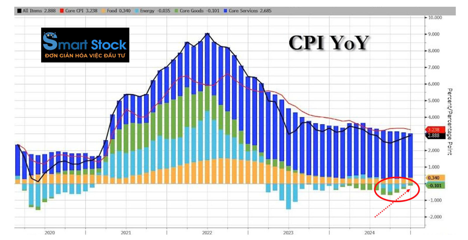 Đáng lo ngại trong CPI tổng thể chính là: Vùng giảm phát của giá năng lượng và giá hàng hóa cốt lốt (loại trừ năng lượng và thực phẩm) đang dần biến mất…. là những áp lực lên CPI tổng thể sắp tới.