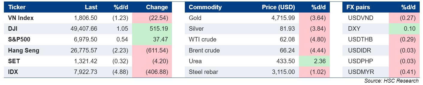 Cùng lúc đó, giá dầu WTI cũng giảm 4% khi rủi ro địa chính trị hạ nhiệt sau những phát biểu tích cực của Trump về Iran. Sự sụt giảm đồng loạt này cho thấy đà tăng trước đó phần lớn do tâm lý lo sợ bỏ lỡ cơ hội (FOMO) và đầu cơ hơn là do yếu tố cơ bản. Trong ngắn hạn, giá vàng sẽ còn biến động rất mạnh khi chờ đợi những động thái rõ ràng hơn từ phía ông Kevin Warsh.