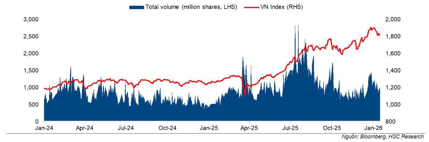 Về vấn đề thanh khoản, Ngân hàng Nhà nước (SBV) đã kịp thời bơm kỷ lục 80.400 tỷ đồng qua kênh OMO với lãi suất không đổi 4,5%. Nhờ đó, số dư OMO đang quay lại mức đỉnh lịch sử (khoảng 376.000 tỷ đồng). Tuy nhiên, áp lực có thể kéo dài trong 2 tuần tới do dòng tiền gửi tiết kiệm bị hút sang thị trường kim loại quý (vàng, bạc), bất chấp việc lãi suất huy động đã tăng lên gần mức trung bình lịch sử.