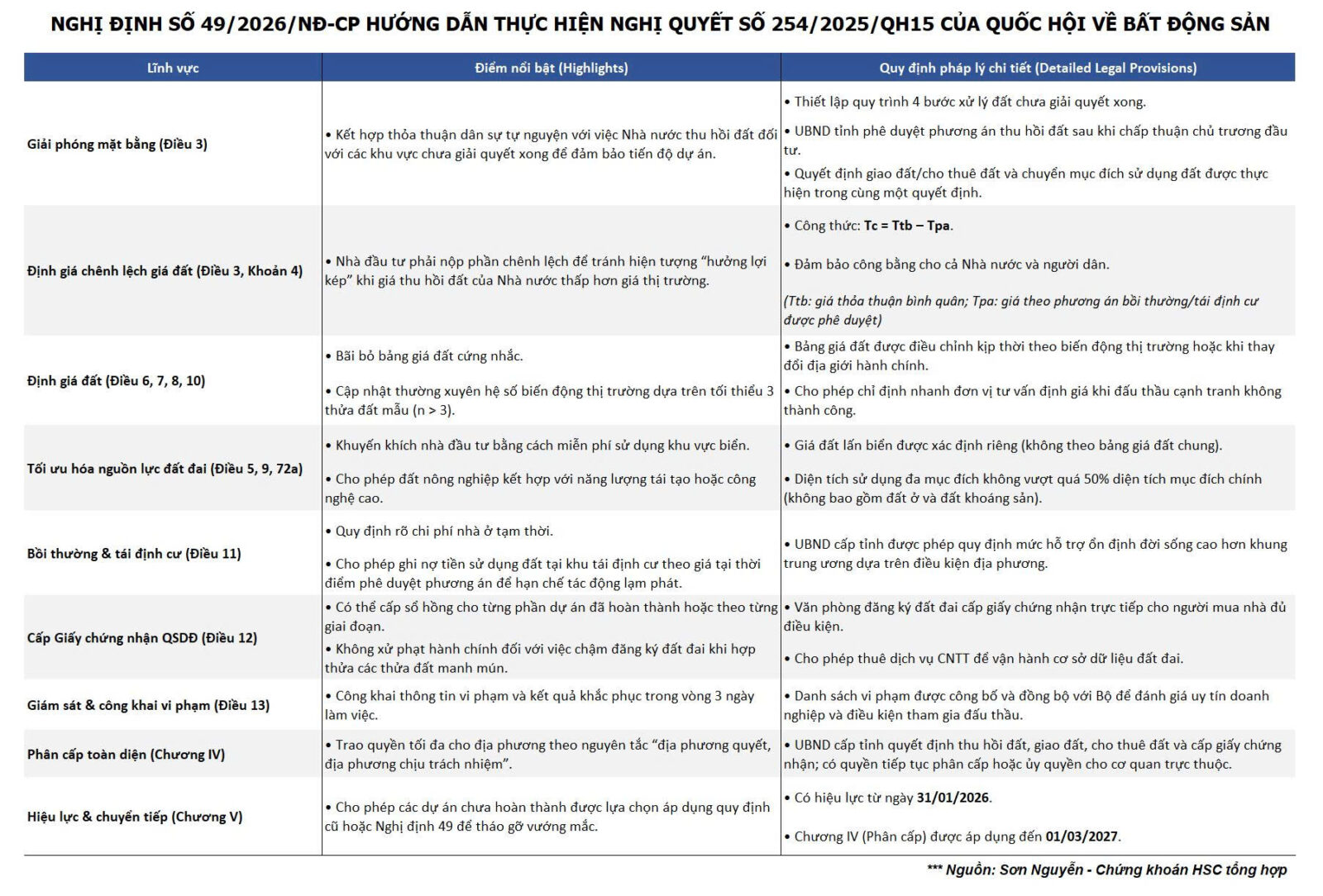 Chính phủ vừa ban hành Nghị định 49/2026/NĐ-CP với nhiều điểm mới mang tính thúc đẩy cho ngành bất động sản. Trọng tâm là việc phân cấp quyền hạn về đất đai cho UBND cấp tỉnh giúp giảm bớt thủ tục rườm rà, đồng thời cho phép kết hợp giữa thỏa thuận dân sự tự nguyện và Nhà nước thu hồi đất để gỡ khó cho các dự án bị đình trệ.