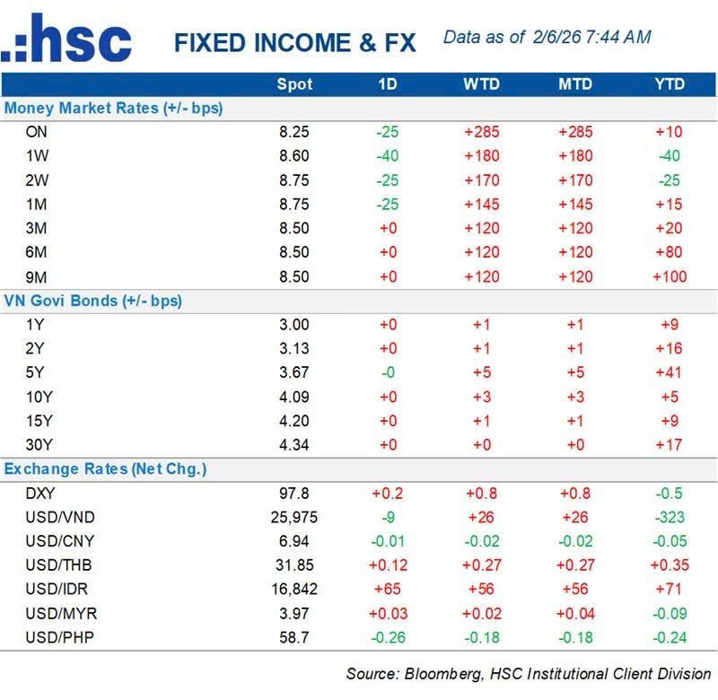 Ngày 4/2/2026, SBV đã triển khai nghiệp vụ hoán đổi USD/VND kỳ hạn 21 ngày (quy mô tối đa 1 tỷ USD) nhằm bơm tạm thời thanh khoản VND cho hệ thống ngân hàng. Biện pháp mang tính kỹ thuật đã từng được triển khai và thanh khoản sẽ được hút lại khi đáo hạn 26/2/2026.