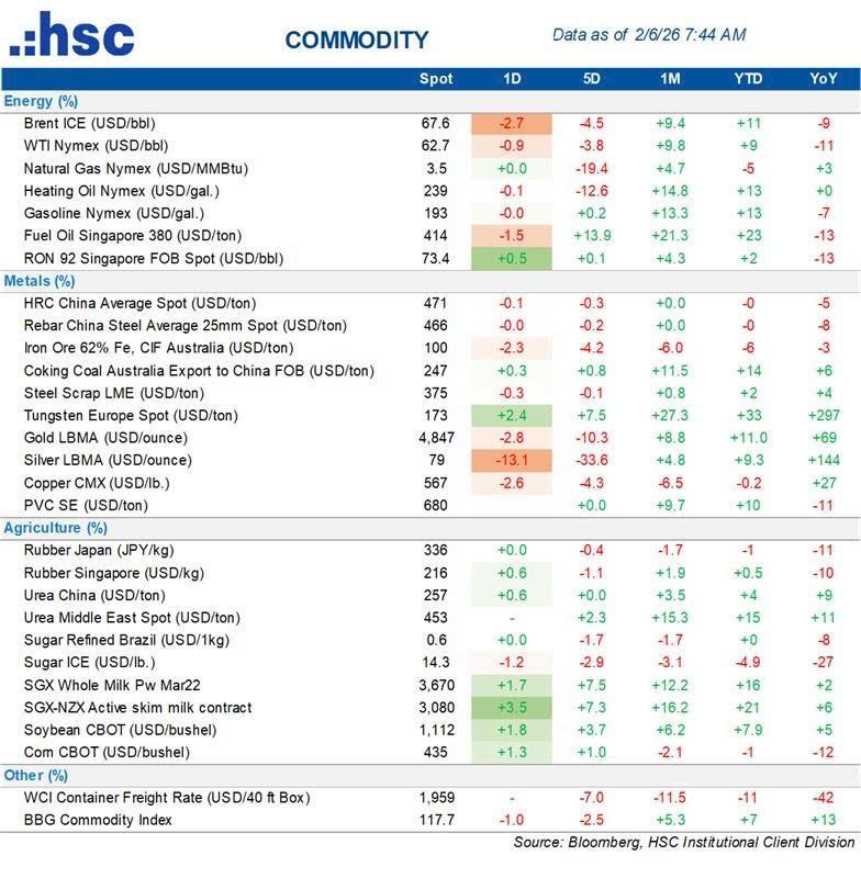 Nhiều loại hàng hóa và tiền điện tử đồng loạt bị bán tháo khi căng thẳng địa chính trị hạ nhiệt: Giá dầu giảm gần 3%, Bitcoin mất 13% xuống dưới mốc 64.000 USD. Các nỗ lực ngoại giao của Tổng thống Donald Trump (đàm phán hạt nhân Mỹ – Iran, điện đàm với Chủ tịch Tập Cận Bình, trao đổi tù binh Nga – Ukraine) đã làm giảm bớt nhu cầu phòng thủ rủi ro của nhà đầu tư.