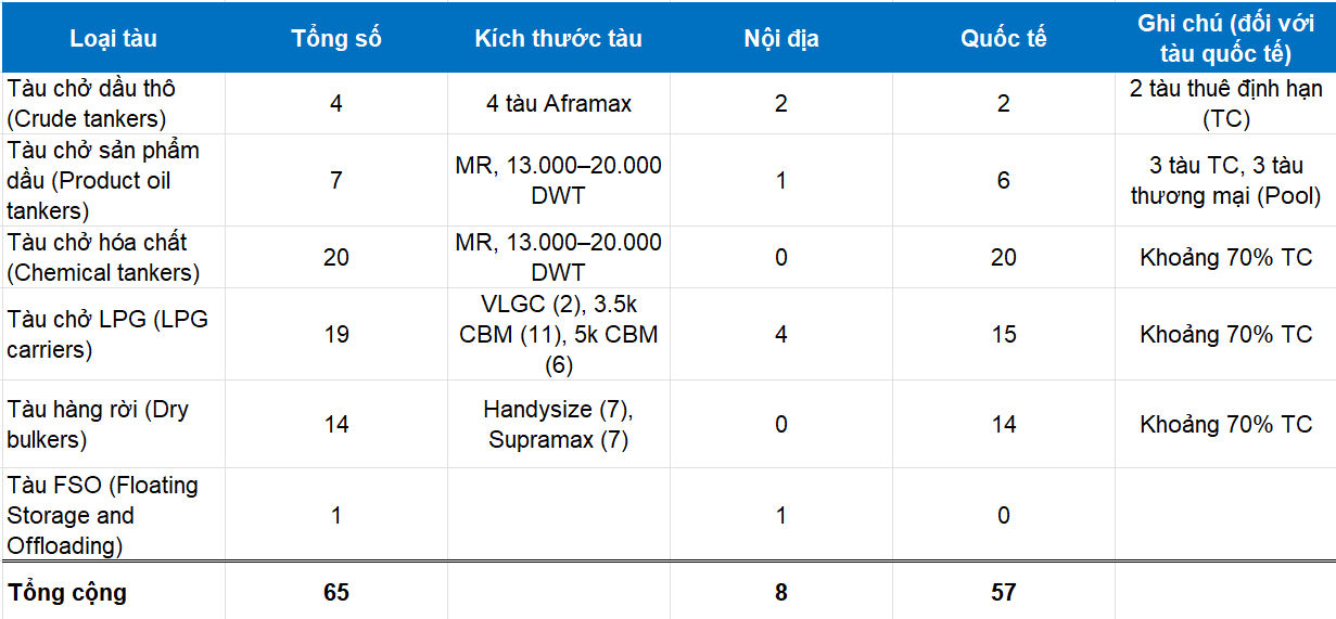 Hiện tại, hơn 90% trong tổng số 65 tàu của PVT đang hoạt động trên thị trường quốc tế (10% hoạt động trên thị trường nội địa).