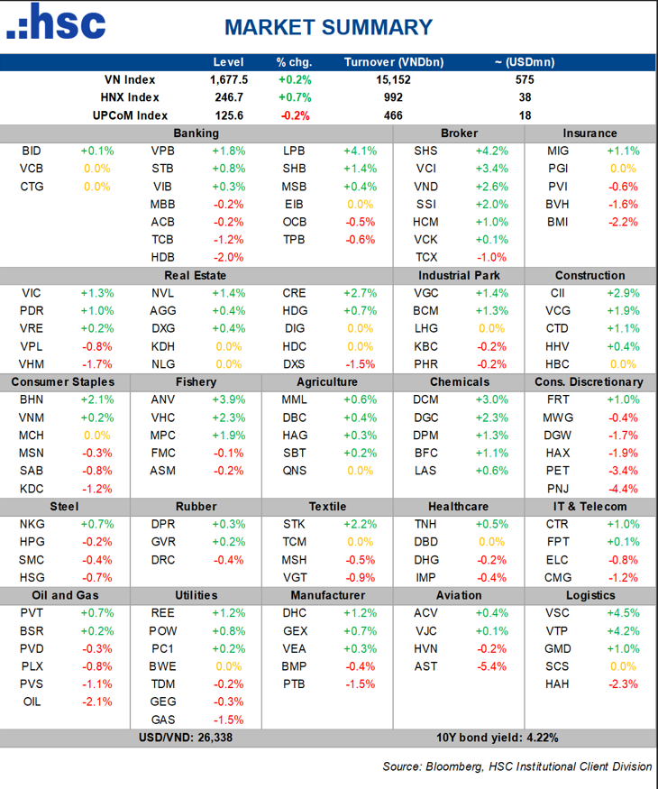 Thị trường trong phiên giao dịch ngày 07/04/2026 ghi nhận một trạng thái vận động giằng co trong biên độ hẹp. VN-Index lại đóng cửa với sắc xanh nhẹ, tăng 2,55 điểm tương đương 0,15% để đạt mốc 1.677,54 điểm. Tuy nhiên, sự hồi phục này vẫn chưa thực sự mang tính thuyết phục về mặt kỹ thuật khi thanh khoản trên sàn HOSE sụt giảm mạnh xuống mức thấp nhất trong vòng hai tháng qua, chỉ đạt hơn 15.000 tỷ đồng. Phản ánh tâm lý thận trọng cực độ của nhà đầu tư trước những biến động khó lường từ bối cảnh địa chính trị thế giới cũng như áp lực lạm phát trong nước.