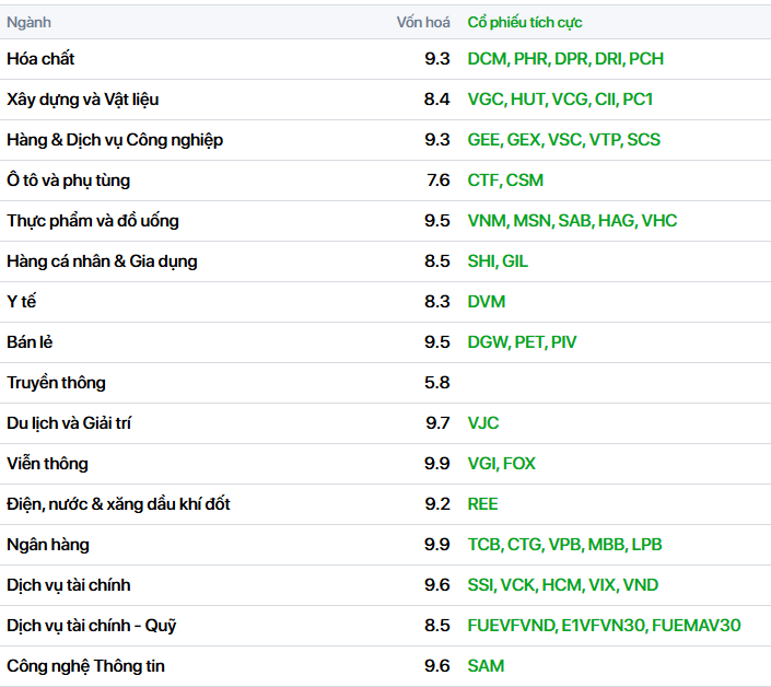 - Xây dựng: cũng ghi nhận diễn biến tích cực khi thu hút dòng tiền, nổi bật với CII tăng trần, HHV (+1,2%), CTD (+1,1%).