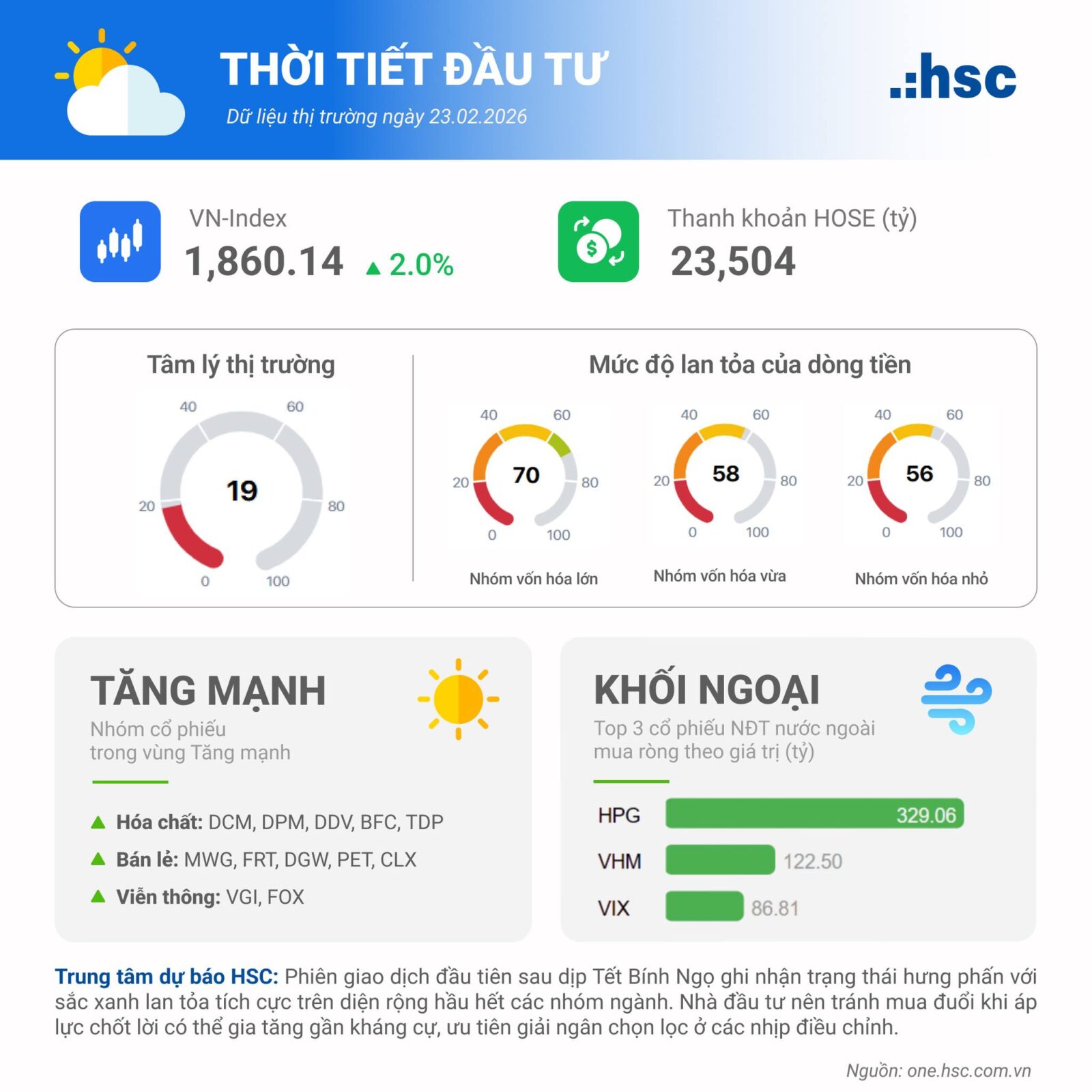 - Phiên giao dịch đầu tiên của năm mới Bính Ngọ ghi nhận trạng thái hưng phấn ngày kể từ đầu phiên với sắc xanh lan tỏa tích cực trên diện rộng hầu hết các nhóm ngành.
