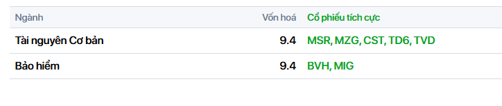 - Bảo hiểm: cũng có mức tăng rất tốt với BVH, MIG tăng trần, BMI (+3,1%), PVI (+1,8%),…